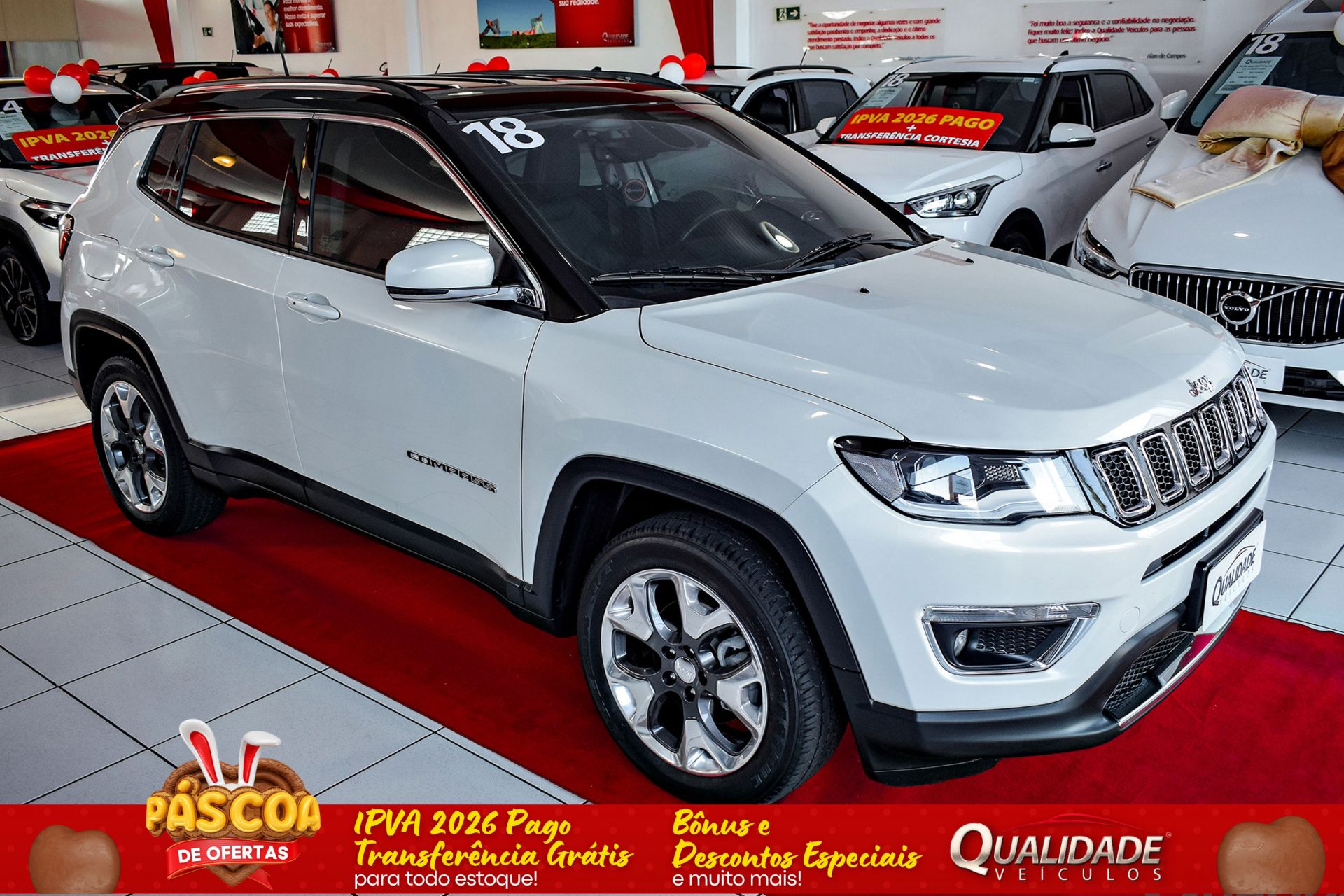 Observações:PLACA I, ADQUIRIDO 0KM NA CONCESSIONÁRIA FELICE-JEEP, DE SÃO GABRIEL-RS. COMPASS LIMITED 2.0 FLEX AT 2018 na cor Branco Polar Perolizada, com apenas 64.900km. Veículo impecável, em raro estado de conservação.