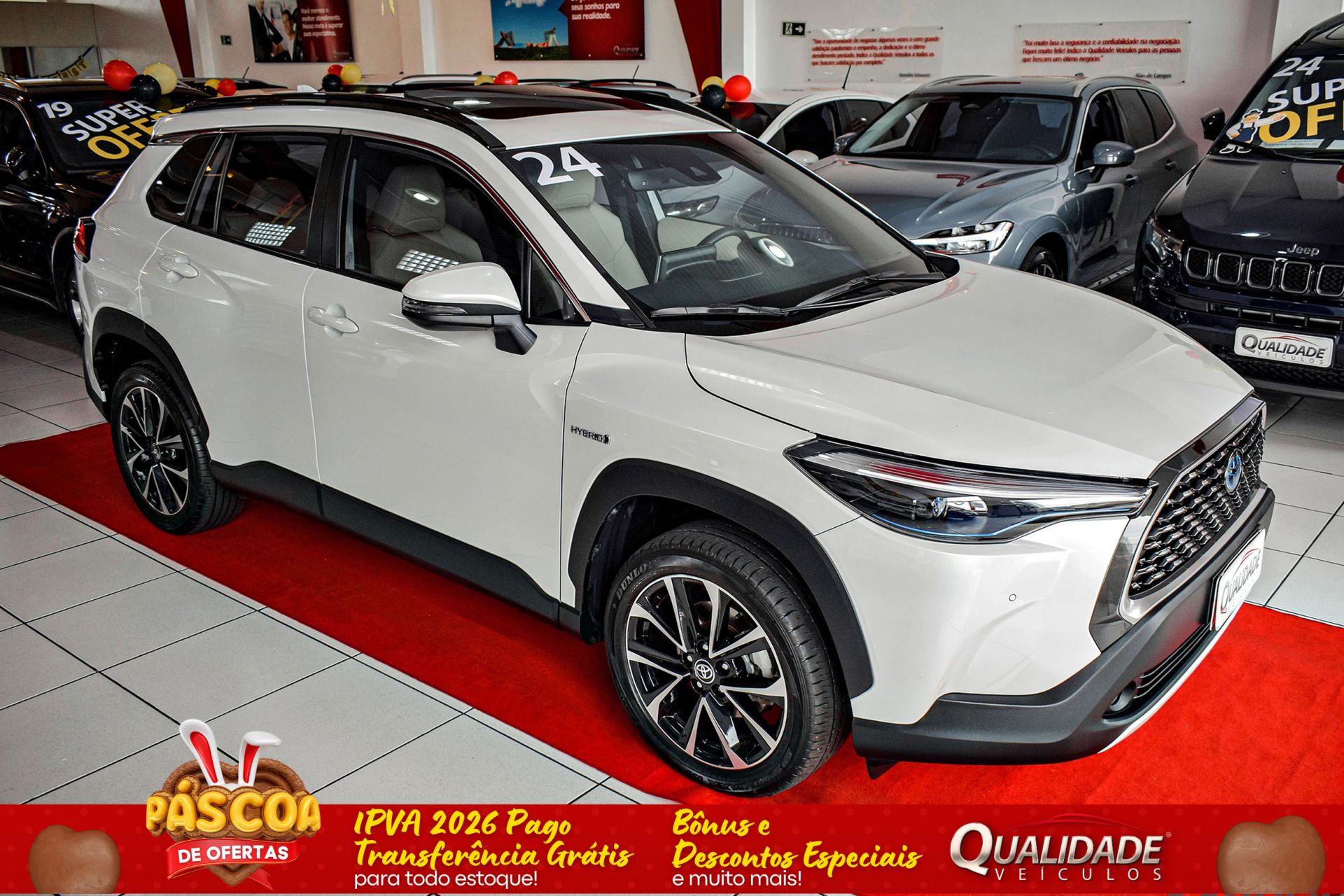 Observações:PLACA J, ADQUIRIDO 0KM NA CONCESSIONÁRIA CARHOUSE- TOYOTA, DE PORTO ALEGRE-RS. COROLLA CROSS XRX HYBRID 1.8 CVT 2024 C/ TETO SOLAR na cor Branco Lunar Perolizado, de única dona, com apenas 22.963km e revisado em concessionária. Veículo impecável, em raro estado de conservação.