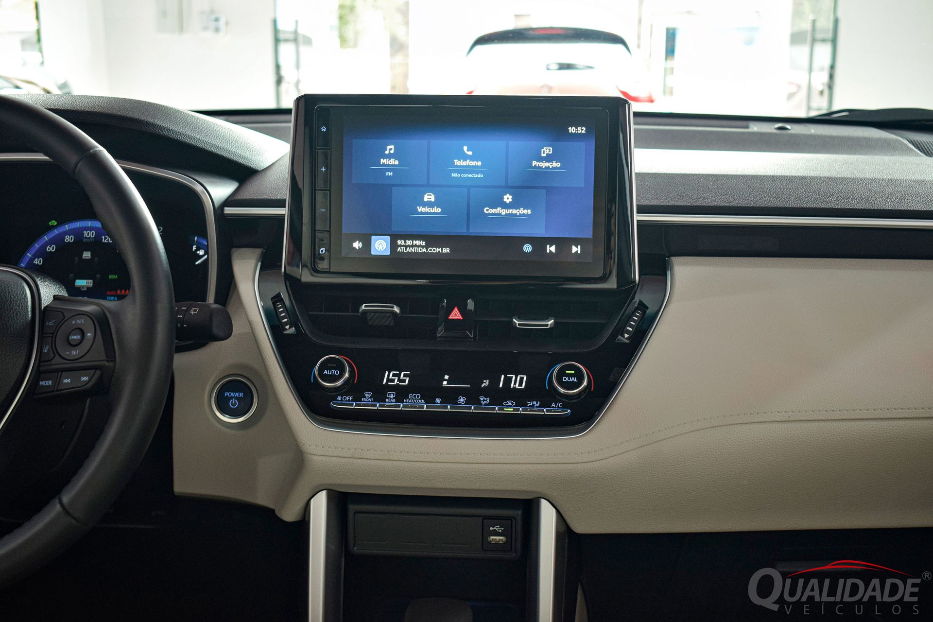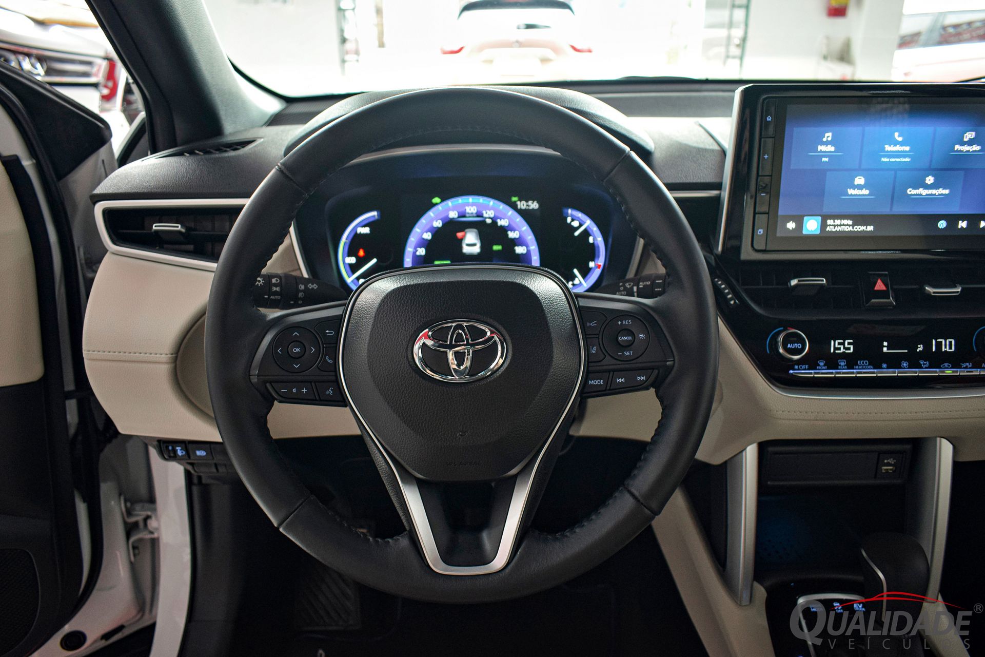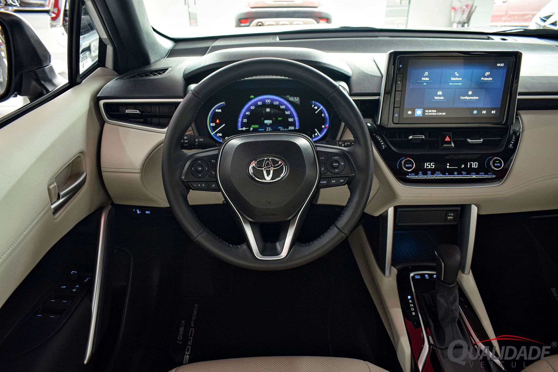 No pacote de opcionais estão incluídos: ar condicionado digital dual-zone, direção elétrica, trio elétrico, reb. elétrico dos retrovisores, volante multifuncional, computador de bordo, piloto automático adaptativo, alerta de colisão, frenagem de emergência, alerta de mudança de faixa, assistente de permanência em faixa, sensores crepuscular e de chuva, farol alto automático, central multimídia, Bluetooth®, USB, Android Auto, Apple CarPlay, câmera de ré, bancos em couro, ajustes elétricos p/ banco do motorista, chave presencial, teto solar, rodas de liga leve, sensores de estacionamento, faróis em LED, Airbags frontais, laterais, de cortina e ABS.
