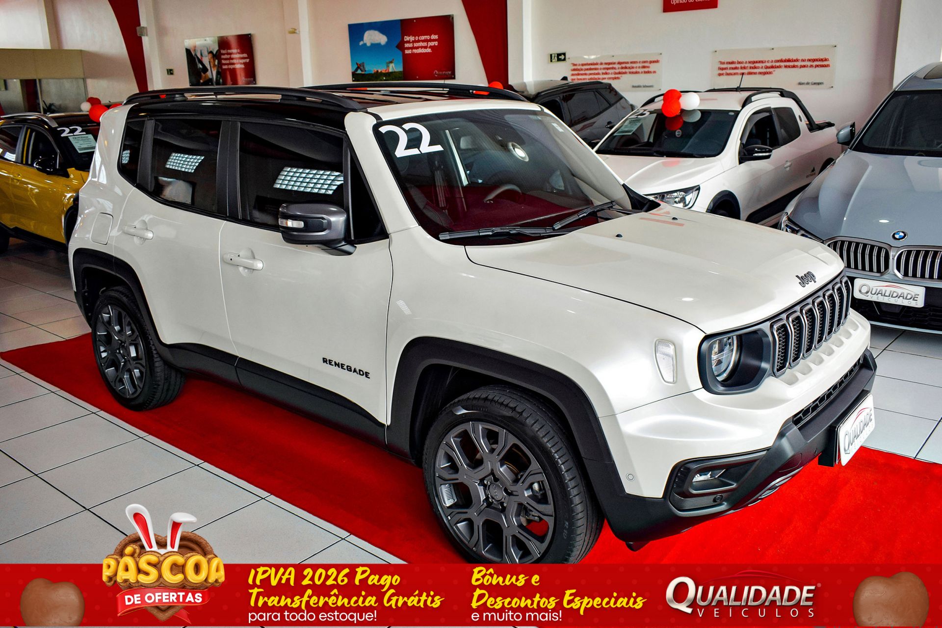 Observações:PLACA J, ADQUIRIDO 0KM NA CONCESSIONÁRIA SAVAR-JEEP, DE PORTO ALEGRE-RS. RENEGADE SÉRIE S T270 1.3 TURBO AT 4X4 2022 na cor Branco Polar Perolizado, de única dona, com apenas 47.399km e revisões em concessionária. Veículo impecável, em raro estado de conservação.