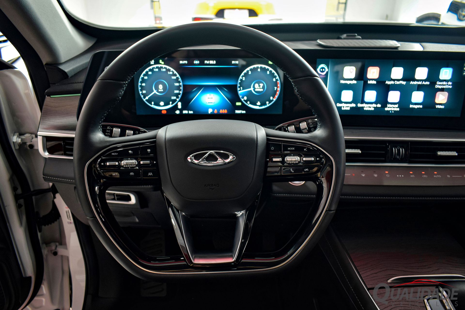 No pacote de opcionais estão incluídos: ar condicionado digital dual-zone, direção elétrica, trio elétrico, reb. elétrico dos retrovisores, volante multifuncional, computador de bordo, piloto automático adaptativo, alerta de colisão, frenagem de emergência, alerta de mudança de faixa, assistente de permanência em faixa, sensores crepuscular e de chuva, farol alto automático, alerta de ponto cego, central multimídia, Bluetooth®, USB, GPS, Android Auto, Apple CarPlay, câmeras 360°, sistema de som premium Sony, carregador de celular por indução, freio de estacionamento eletrônico, bancos em couro, ajustes elétricos p/ bancos dianteiros, chave presencial, teto solar panorâmico, rodas de liga leve, sensores de estacionamento, faróis em LED, Airbags frontais, laterais, de cortina e ABS.